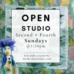 Drop-in Open Studios are happening every first and third Sundays of the month from 1:30 – 4:00 pm.