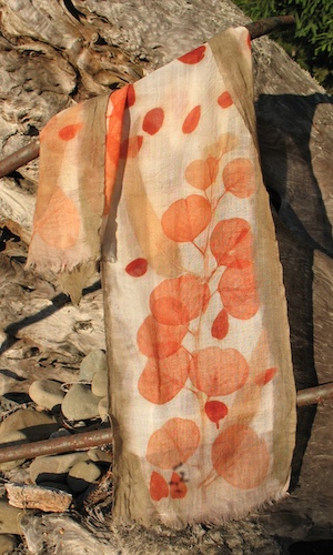 Class Description: Using protein fibers, leaves, bark and roots we will print beautiful colors. No pre-mordants or dyes. Learn to make your own tinctures to shift colors, get tips on bundling practices, learn to identify plants that never fail to give color and go home with some fun printed fabrics and a silk scarf.