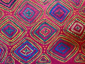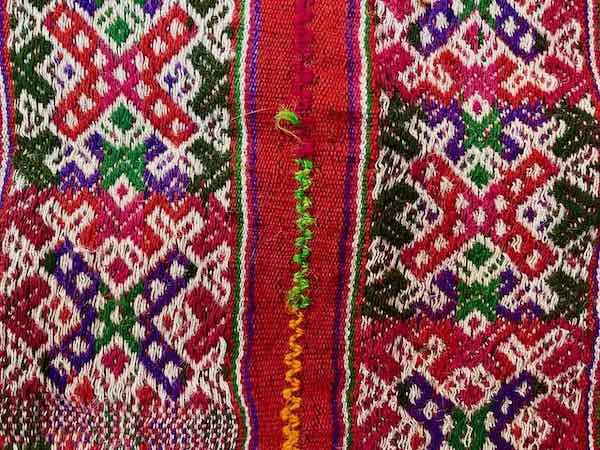 From the collection of Mickie McCormic: In 1972, McCormic set off for South America in a Volkswagen van with her husband and 3-year old son (who had his fourth birthday in the jungle of Ecuador). They made it as far as Peru, and she collected textiles all along the way, including woven pieces from Peru, ikat-dyed work with elaborate knotting from Ecuador, and molas from Panama.