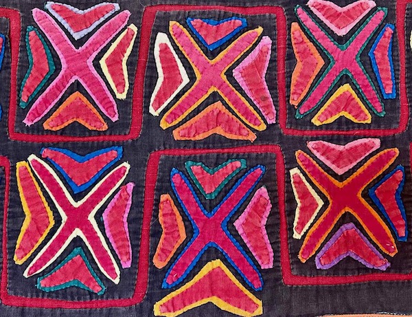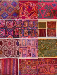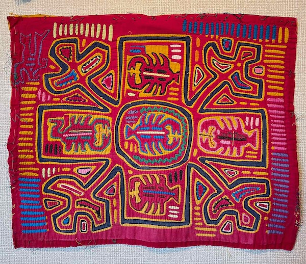 Many of them are on display and for sale in November in the Pacific Textile Arts gallery, opening on First Friday, November 4th. There will also be pieces from the Pacific Textile Arts’ study collection, including Pre-Columbian works and a shirt that shows how molas were incorporated into clothing. Although many molas are made for tourists today, all of the ones on display were originally used as clothing.